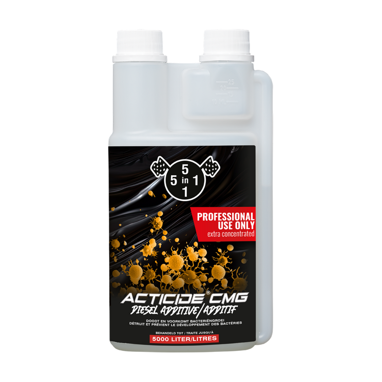 5in1 Acticide CMG is een zeer effectieve bacteriedodende biocide voor dieselmotoren. Het voorkomt verstoppingen van het brandstoffilter door bacteriegroei.