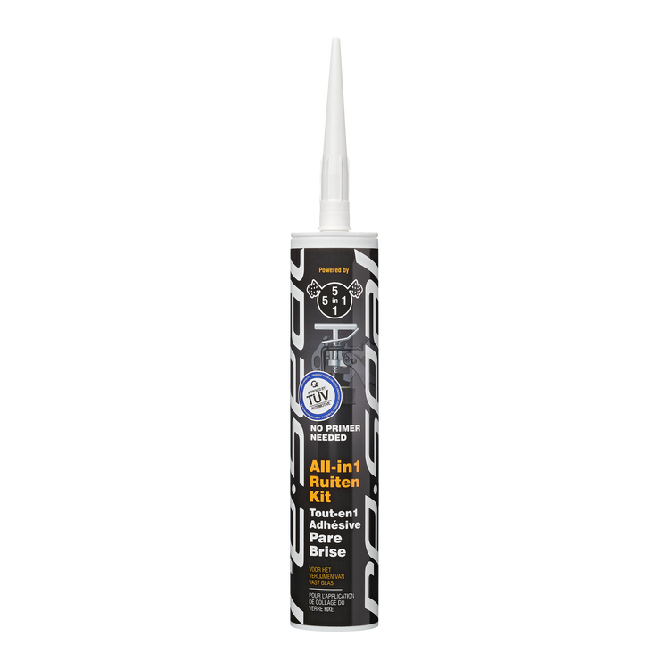 5in1 All-in1 Ruitenkit met TUV keuring is een zeer hoogwaardige, sterk verlijmende ruitenkit op MS polymeerbasis. Deze kit is speciaal ontwikkeld voor het snel en professioneel verlijmen van autoruiten. Door de unieke samenstelling van de 5in1 ruitenkit heeft het product een perfecte hechting op oude ruitenkit, glas en keramische randen, en dit zonder gebruik van een primer.